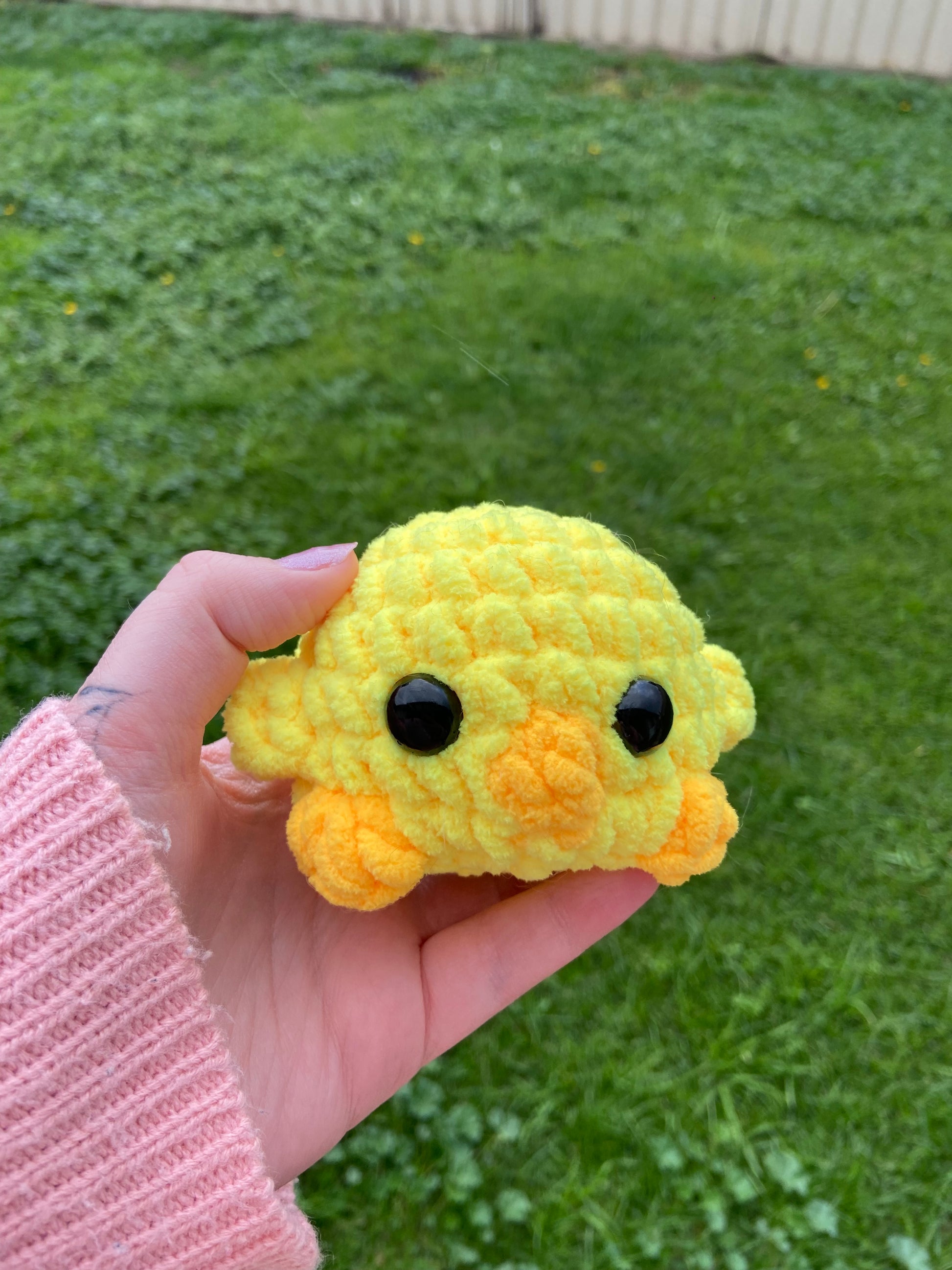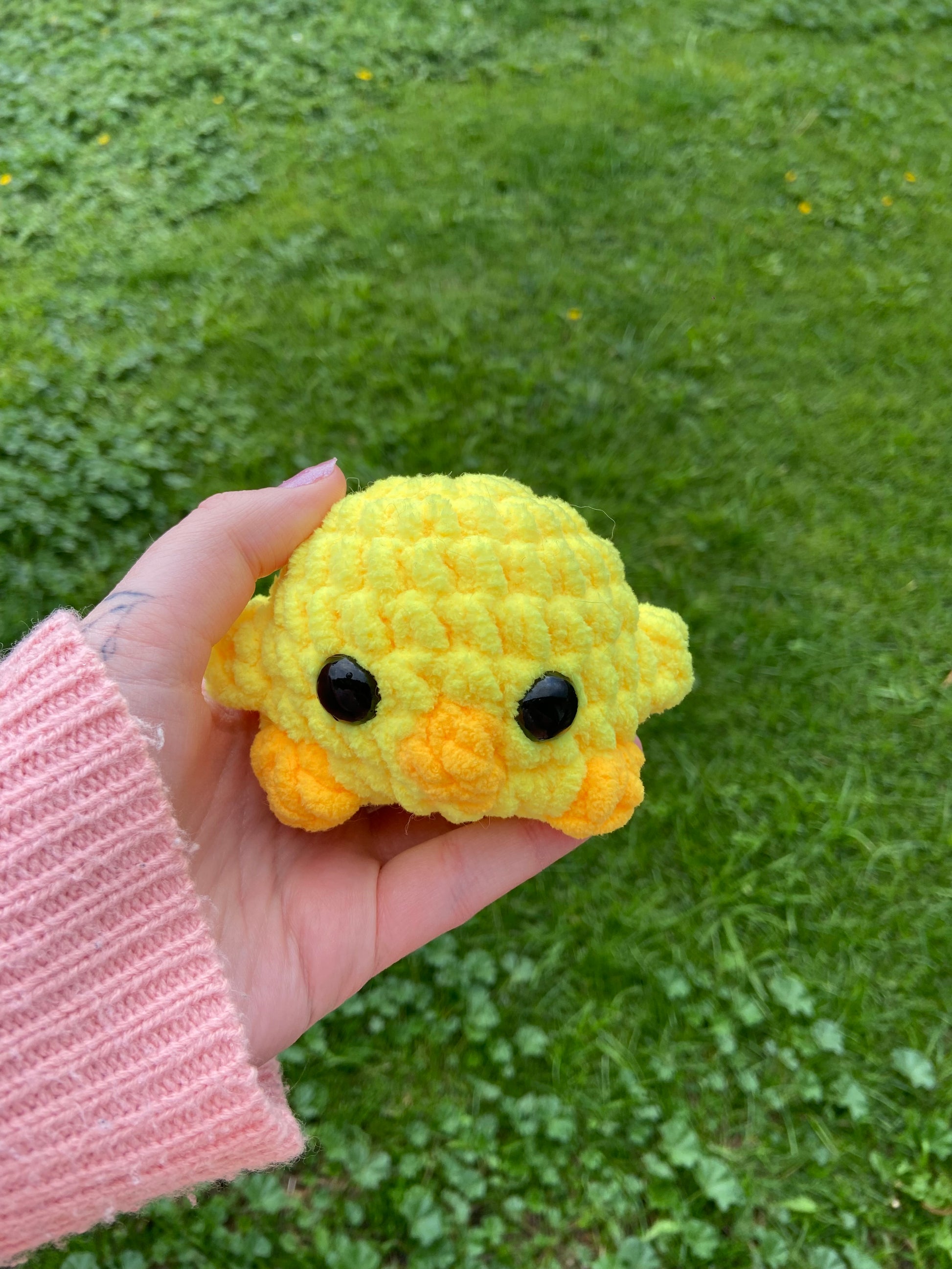 This originally designed chick is made from chenille blanket yarn, which makes it super soft and cuddly! I hope you love them just as much as I do!
